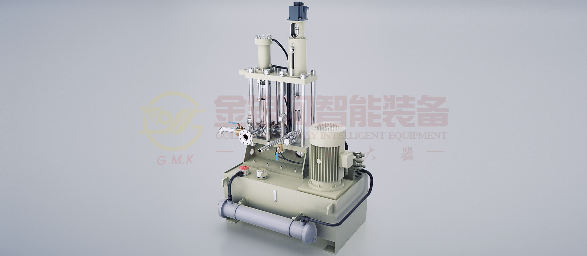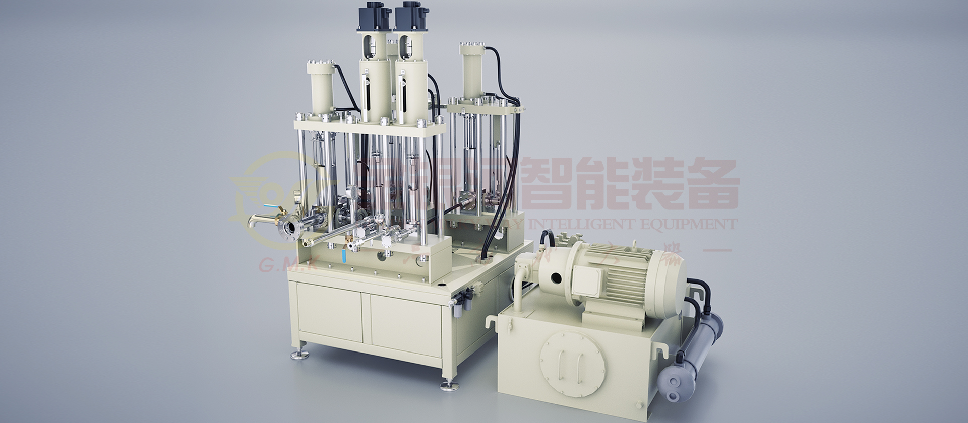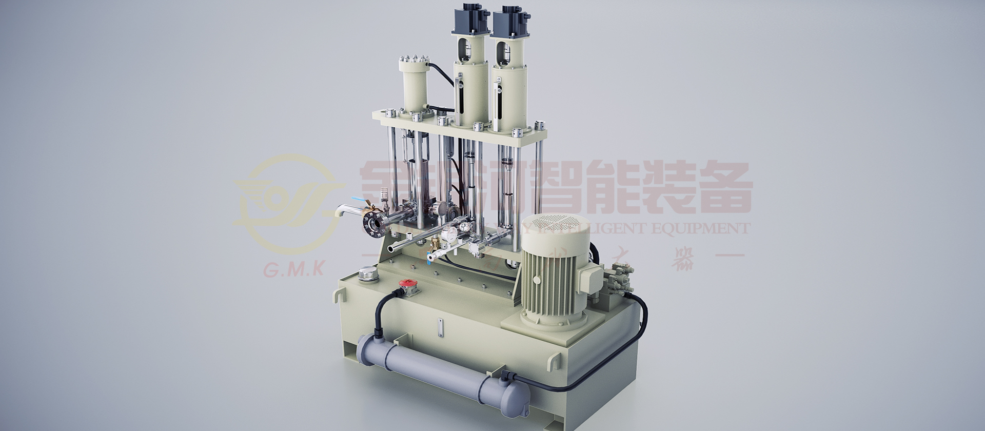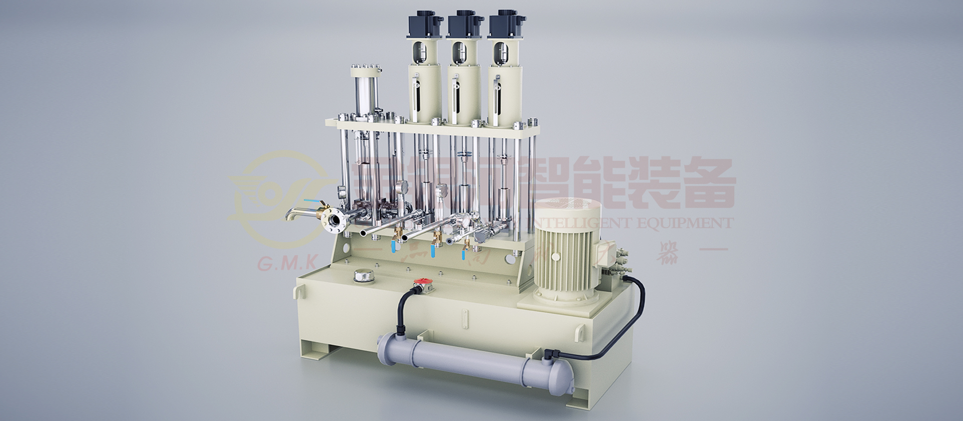 本机由下机座(油站)、上工作部件、电气控制系统等组成。下机座为焊接结构,既是上工作部件的支架也是液压系统的油箱;上工作部件包括上下梁、立柱、阀门、压料机构、伺服计量机构、汇合管及静态混合器等;液压系统包括电机、油泵、溢流阀、电磁换向阀及其管路等;电器控制系统包括PLC、人机界面、位移传感器、旋转编码器、中间继电等。特点如下:
